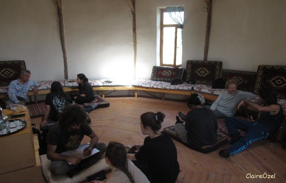 After lunch, a workshop focussed on the questions of first time visitors. These first timers had all looked at Güneşköy information on the website - before leaving Ankara: no time was needed for giving that information once we arrrived at Güneşköy. Three groups worked independently, generating a variety of questions, which were then categorised, Basic - Complex - Abstract. Then long-term members of Güneşköy answered the questions. Rather than those who know giving what they think people want, we listened to what new-comers wanted to know. Some interesting points appeared.