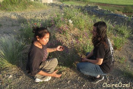 In the evening, leaving from the strawbale building, Ink wanted to pick some flowers for her art activity.I took her and Şura over the top, climbing up under the viaduct. Previous years never had such a range of colours: so many plants are now settling in to this new environment.